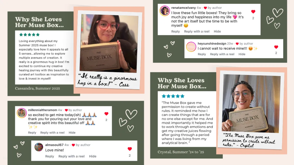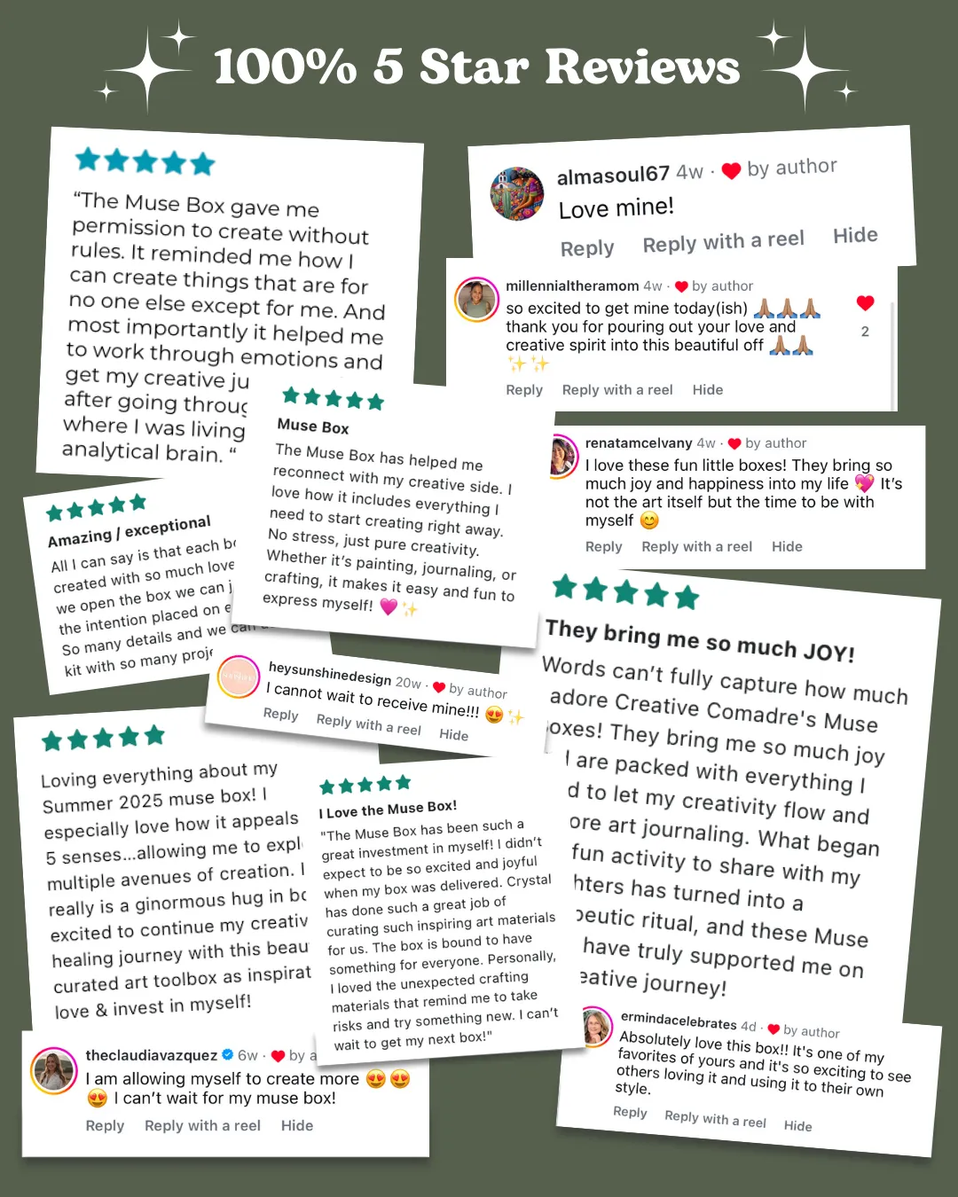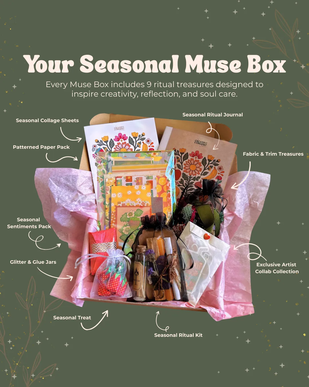 This box is more than supplies, itβs a reminder that you deserve time to pause, to play, and to reconnect with your soul. Every season, I use my own Muse Box to process, release, and create with my kids by my side.